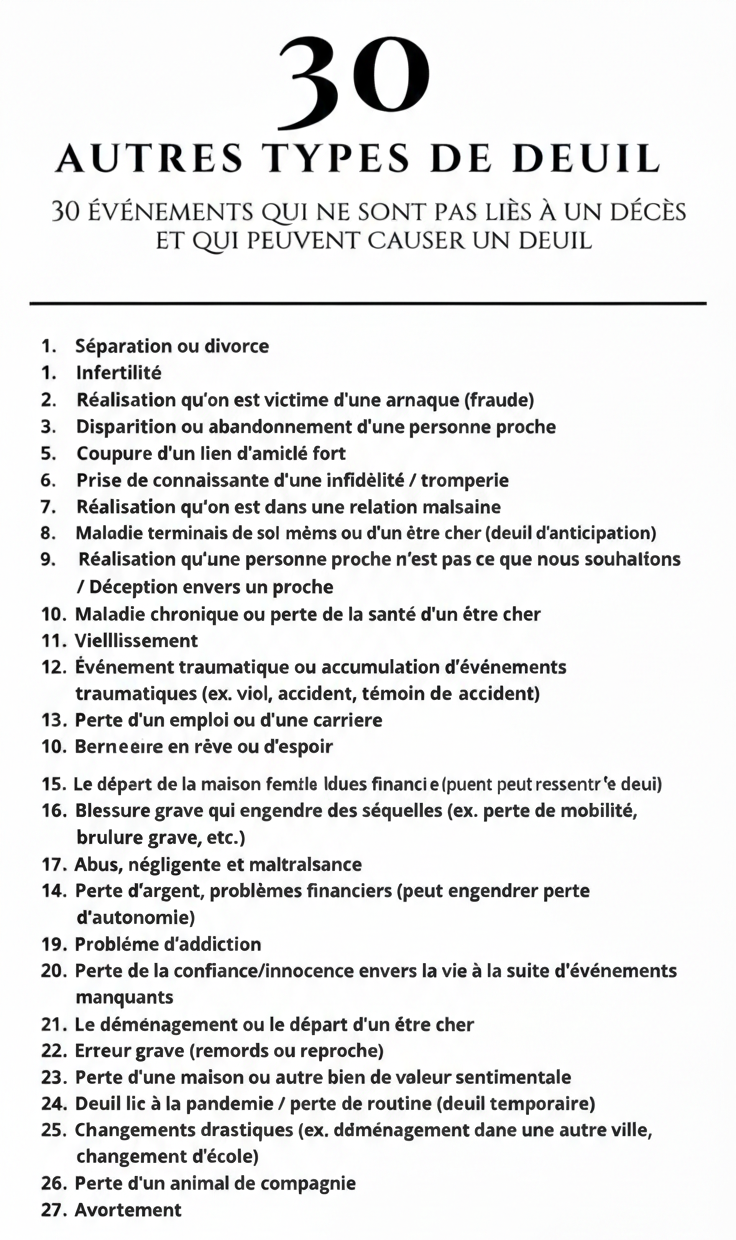 - Orienter vers des Ressources Complémentaires: Recommander des groupes de soutien, des lectures ou d’autres ressources qui peuvent aider dans le processus de deuil.
